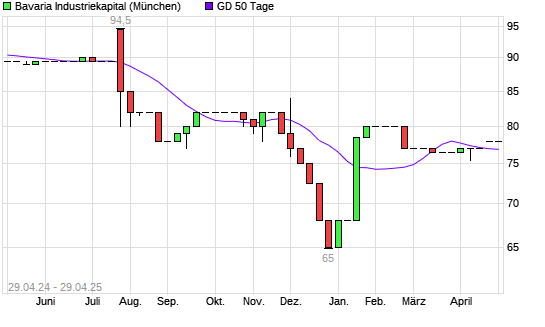 Mit dem Anstieg auf 77,00 EUR hat die Bavaria Industriekapital-Aktie am 28.04.2025 die 50-Tage-Linie nach oben gekreuzt.