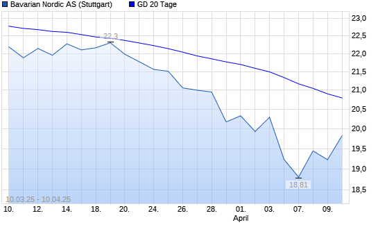 Mit dem Anstieg auf 21,16 EUR hat die Bavarian Nordic-Aktie am 09.04.2025 die 20-Tage-Linie nach oben gekreuzt.
