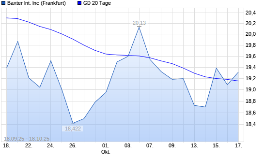 Mit dem Anstieg auf 19,31 EUR hat die Baxter International-Aktie am 17.10.2025 die 20-Tage-Linie nach oben gekreuzt.