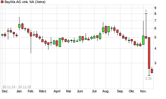 Mit dem Rücksetzer auf 2,50 EUR hat die BayWa-Aktie (ISIN DE0005194062) am 19.11.2025 ein neues 10-Jahres-Tief erreicht und damit den Kurs vom 18.11.2025 eingestellt.