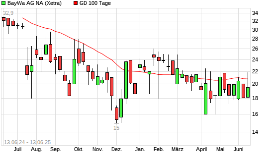 Mit dem Anstieg auf 20,00 EUR hat die BayWa-Aktie am 12.06.2025 die 100-Tage-Linie nach oben gekreuzt.