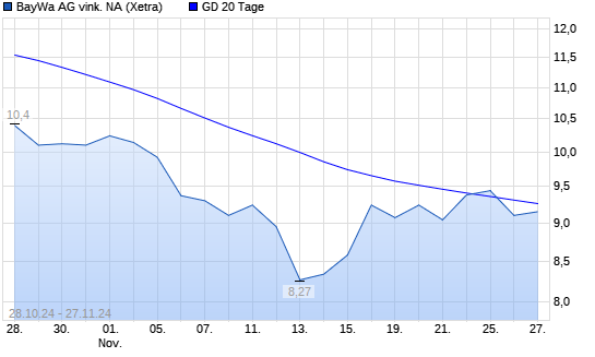 Mit dem Anstieg auf 9,32 EUR hat die BayWa-Aktie am 26.11.2024 die 20-Tage-Linie nach oben gekreuzt.