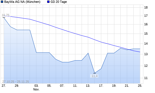 Mit dem Anstieg auf 13,50 EUR hat die BayWa-Aktie am 24.11.2025 die 20-Tage-Linie nach oben gekreuzt.