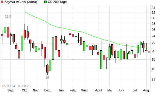 Mit dem Anstieg auf 20,00 EUR hat die BayWa-Aktie am 04.08.2025 die 200-Tage-Linie nach oben gekreuzt.