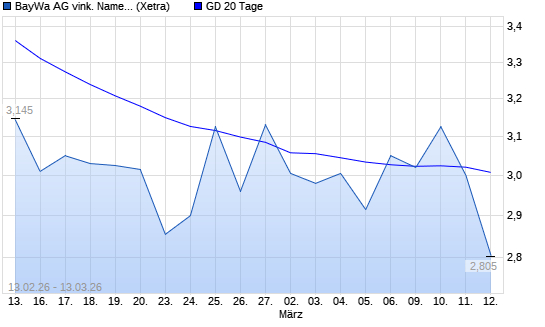 Mit dem Rücksetzer auf 2,77 EUR hat die BayWa-Aktie am 12.03.2026 die 20-Tage-Linie nach unten gekreuzt.
