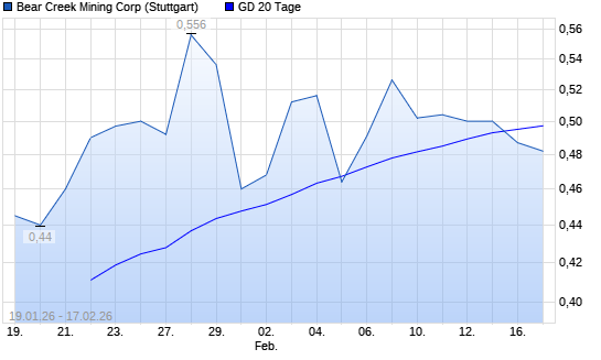 Mit dem Rücksetzer auf 0,49 EUR hat die Bear Creek Mining-Aktie am 16.02.2026 die 20-Tage-Linie nach unten gekreuzt.