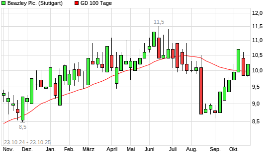 Mit dem Anstieg auf 10,10 EUR hat die Beazley-Aktie am 22.10.2025 die 100-Tage-Linie nach oben gekreuzt.