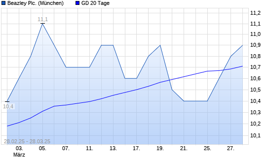 Mit dem Anstieg auf 10,60 EUR hat die Beazley-Aktie am 27.03.2025 die 20-Tage-Linie nach oben gekreuzt.