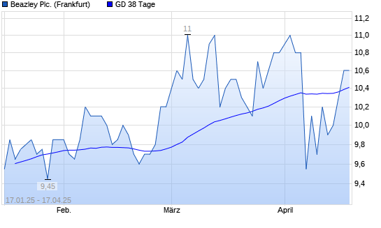 Mit dem Anstieg auf 10,60 EUR hat die Beazley-Aktie am 16.04.2025 die 38-Tage-Linie nach oben gekreuzt.