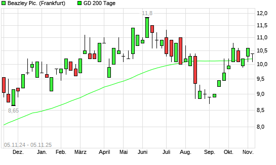 Mit dem Rücksetzer auf 10,20 EUR hat die Beazley-Aktie am 04.11.2025 die 200-Tage-Linie nach unten gekreuzt.