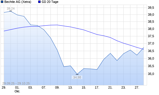 Mit dem Anstieg auf 36,90 EUR hat die Bechtle-Aktie am 28.10.2025 die 20-Tage-Linie nach oben gekreuzt.