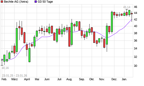 Mit dem Anstieg auf 43,60 EUR hat die Bechtle-Aktie am 22.01.2026 die 50-Tage-Linie nach oben gekreuzt.