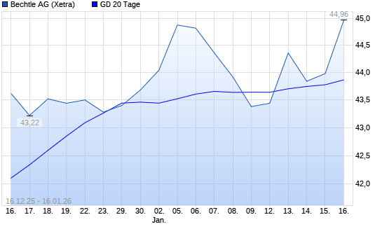 Mit dem Rücksetzer auf 43,60 EUR hat die Bechtle-Aktie am 15.01.2026 die 20-Tage-Linie nach unten gekreuzt.