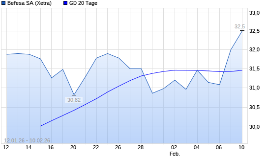 Mit dem Anstieg auf 31,64 EUR hat die Befesa-Aktie am 09.02.2026 die 20-Tage-Linie nach oben gekreuzt.
