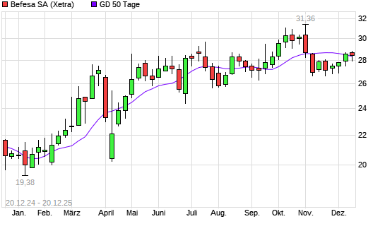 Mit dem Anstieg auf 28,58 EUR hat die Befesa-Aktie am 19.12.2025 die 50-Tage-Linie nach oben gekreuzt.