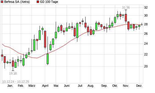 Mit dem Rücksetzer auf 27,84 EUR hat die Befesa-Aktie am 09.12.2025 die 100-Tage-Linie nach unten gekreuzt.