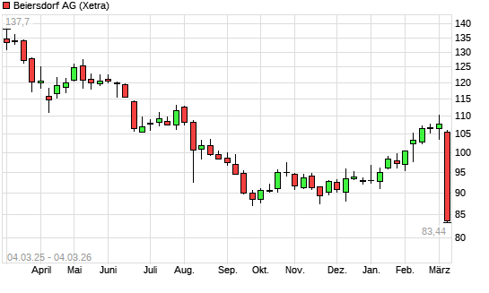 Mit dem Rücksetzer auf 85,46 EUR hat die Beiersdorf-Aktie (ISIN DE0005200000) am 03.03.2026 ein neues 3-Jahres-Tief erreicht und damit den Kurs vom 20.11.2025 eingestellt.