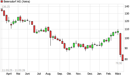 Mit dem Rücksetzer auf 80,54 EUR hat die Beiersdorf-Aktie (ISIN DE0005200000) am 10.03.2026 ein neues 5-Jahres-Tief erreicht und damit den Kurs vom 07.03.2022 eingestellt.