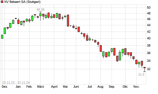 Mit dem Rücksetzer auf 31,94 EUR hat die Bekaert-Aktie (ISIN BE0974258874) am 21.11.2024 ein neues 12-Monats-Tief erreicht und damit den Kurs vom 13.11.2024 eingestellt.