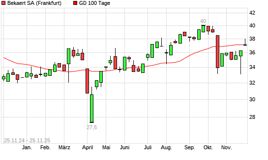 Mit dem Anstieg auf 37,35 EUR hat die Bekaert-Aktie am 24.11.2025 die 100-Tage-Linie nach oben gekreuzt.