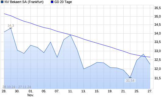 Mit dem Anstieg auf 32,82 EUR hat die Bekaert-Aktie am 26.11.2024 die 20-Tage-Linie nach oben gekreuzt.