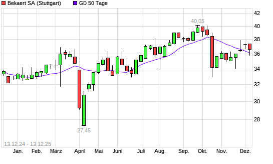 Mit dem Anstieg auf 36,90 EUR hat die Bekaert-Aktie am 12.12.2025 die 50-Tage-Linie nach oben gekreuzt.