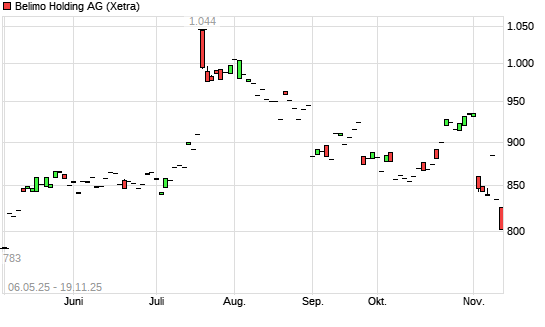 Mit dem Rücksetzer auf 802,00 EUR hat die Belimo Holding-Aktie (ISIN CH1101098163) am 18.11.2025 ein neues 6-Monats-Tief erreicht und damit den Kurs vom 17.11.2025 eingestellt.