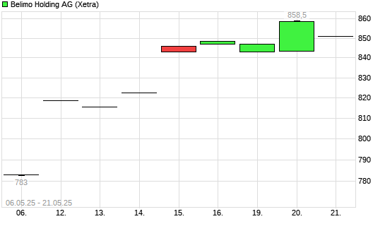 Mit dem Anstieg auf 858,50 EUR hat die Belimo Holding-Aktie (ISIN CH1101098163) am 20.05.2025 ein neues All-Time-High erreicht und damit den Kurs vom 16.05.2025 eingestellt.