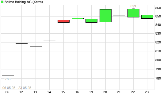 Mit dem Anstieg auf 859,00 EUR hat die Belimo Holding-Aktie (ISIN CH1101098163) am 22.05.2025 ein neues All-Time-High erreicht und damit den Kurs vom 20.05.2025 eingestellt.