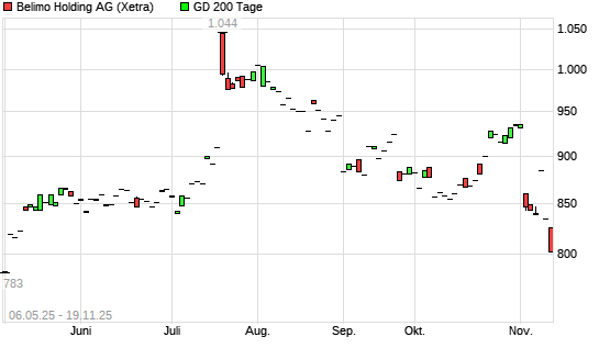 Mit dem Rücksetzer auf 802,00 EUR hat die Belimo Holding-Aktie am 18.11.2025 die 200-Tage-Linie nach unten gekreuzt.