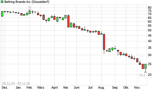 Mit dem Rücksetzer auf 21,20 EUR hat die BellRing Brands-Aktie (ISIN US07831C1036) am 19.11.2025 ein neues 3-Jahres-Tief erreicht und damit den Kurs vom 21.11.2022 eingestellt.