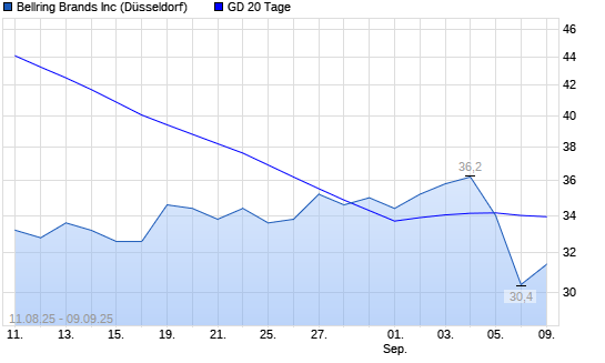 Mit dem Rücksetzer auf 32,80 EUR hat die BellRing Brands-Aktie am 08.09.2025 die 20-Tage-Linie nach unten gekreuzt.