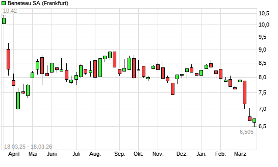 Mit dem Rücksetzer auf 6,51 EUR hat die Beneteau-Aktie (ISIN FR0000035164) am 17.03.2026 ein neues 5-Jahres-Tief erreicht und damit den Kurs vom 16.03.2026 eingestellt.
