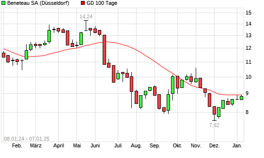 Mit dem Anstieg auf 8,92 EUR hat die Beneteau-Aktie am 06.01.2025 die 100-Tage-Linie nach oben gekreuzt.