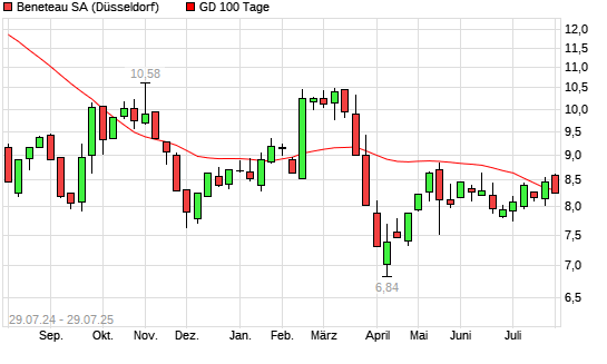 Mit dem Anstieg auf 8,36 EUR hat die Beneteau-Aktie am 28.07.2025 die 100-Tage-Linie nach oben gekreuzt.