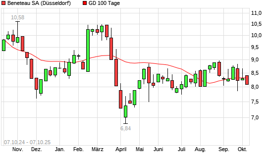 Mit dem Anstieg auf 8,40 EUR hat die Beneteau-Aktie am 06.10.2025 die 100-Tage-Linie nach oben gekreuzt.