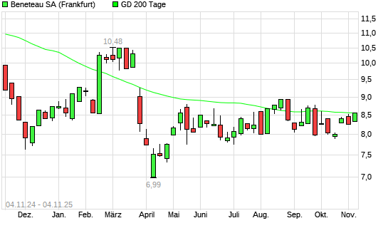Mit dem Anstieg auf 8,56 EUR hat die Beneteau-Aktie am 03.11.2025 die 200-Tage-Linie nach oben gekreuzt.