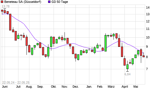 Mit dem Anstieg auf 8,42 EUR hat die Beneteau-Aktie am 21.05.2025 die 50-Tage-Linie nach oben gekreuzt.