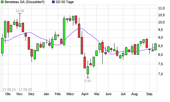 Mit dem Anstieg auf 8,52 EUR hat die Beneteau-Aktie am 16.09.2025 die 50-Tage-Linie nach oben gekreuzt.