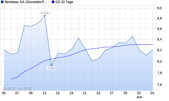 Mit dem Rücksetzer auf 8,27 EUR hat die Beneteau-Aktie am 03.06.2025 die 20-Tage-Linie nach unten gekreuzt.