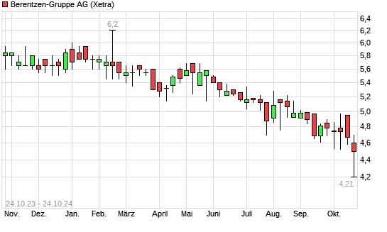 Mit dem Rücksetzer auf 4,58 EUR hat die Berentzen-Aktie (ISIN DE0005201602) am 23.10.2024 ein neues All-Time-Low erreicht und damit den Kurs vom 22.10.2024 eingestellt.