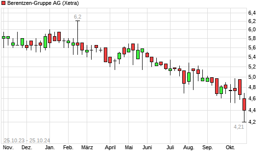 Mit dem Rücksetzer auf 4,34 EUR hat die Berentzen-Aktie (ISIN DE0005201602) am 24.10.2024 ein neues All-Time-Low erreicht und damit den Kurs vom 23.10.2024 eingestellt.