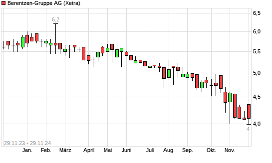 Mit dem Rücksetzer auf 4,02 EUR hat die Berentzen-Aktie (ISIN DE0005201602) am 28.11.2024 ein neues All-Time-Low erreicht und damit den Kurs vom 27.11.2024 eingestellt.