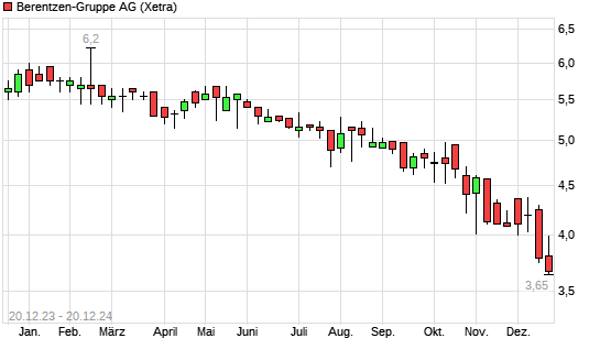 Mit dem Rücksetzer auf 3,73 EUR hat die Berentzen-Aktie (ISIN DE0005201602) am 19.12.2024 ein neues All-Time-Low erreicht und damit den Kurs vom 17.12.2024 eingestellt.