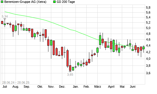 Mit dem Anstieg auf 4,26 EUR hat die Berentzen-Aktie am 27.06.2025 die 200-Tage-Linie nach oben gekreuzt.