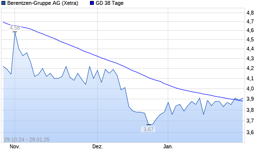 Mit dem Anstieg auf 3,86 EUR hat die Berentzen-Aktie am 28.01.2025 die 38-Tage-Linie nach oben gekreuzt.