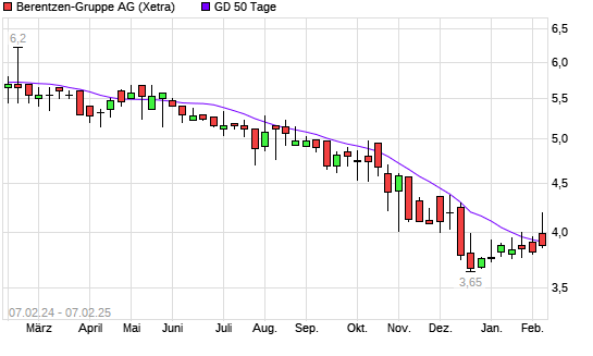 Mit dem Anstieg auf 3,99 EUR hat die Berentzen-Aktie am 06.02.2025 die 50-Tage-Linie nach oben gekreuzt.