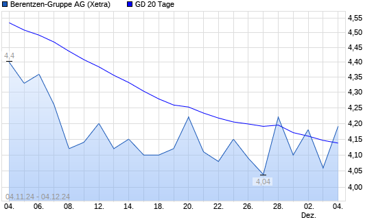Mit dem Rücksetzer auf 4,11 EUR hat die Berentzen-Aktie am 03.12.2024 die 20-Tage-Linie nach unten gekreuzt.
