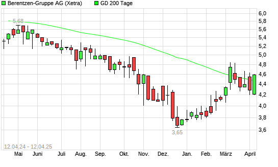 Mit dem Rücksetzer auf 4,27 EUR hat die Berentzen-Aktie am 11.04.2025 die 200-Tage-Linie nach unten gekreuzt.