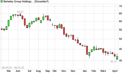 Mit dem Rücksetzer auf 40,00 EUR hat die Berkeley Group Holdings-Aktie (ISIN GB00BP0RGD03) am 07.04.2025 ein neues 12-Monats-Tief erreicht und damit den Kurs vom 15.01.2025 eingestellt.